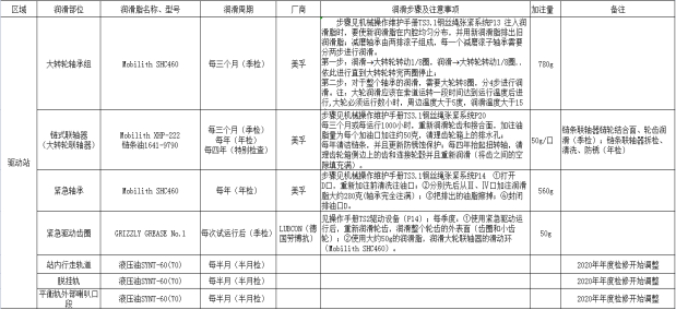 图7 驱动站润滑周期及注意事项