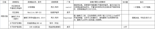 图6 线路支架润滑周期及注意事项